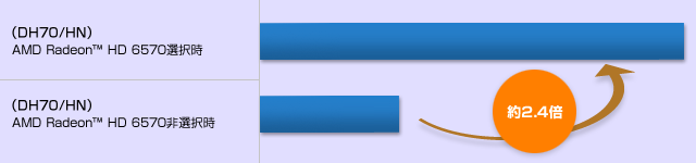 | * | 第3世代インテル® Core™ i5-3450 プロセッサー、メモリ4GB(PC3-12800対応)、HDD 約4TBで、「AMD Radeon™ HD 6570」と「Intel® HD Graphics 2500(CPU内蔵)」を比較した数値。 |