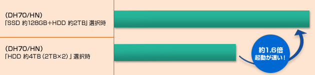 | * | Windows® 7 Home Premium 64ビット (SP1適用済み) 正規版、第3世代インテル® Core™ i7-3770 プロセッサー、メモリ4GB(PC3-12800対応)で、「SSD 約128GB + HDD 約2TB(5,400回転/分)」と「HDD 約4TB(2TB×2)(5,400回転/分)を比較した数値。 |