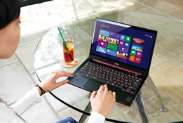 タッチパネルを搭載したモデルでは、タッチによる直感的な操作が可能です。特にWindowsの新しいユーザーインターフェースは、タッチ操作に最適化された作りになっています。