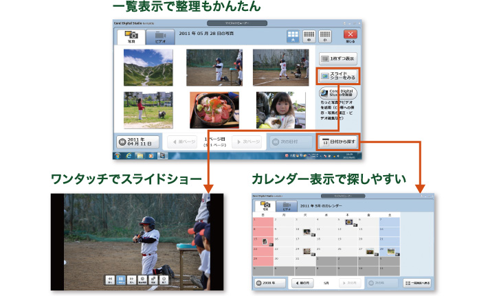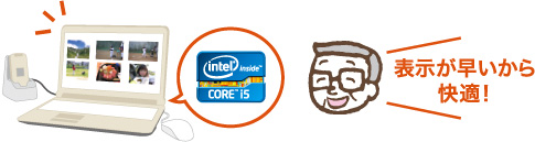 「インテル® Core™ i5-2520M プロセッサー」搭載だから、高解像度の写真を大量に取り込んでいても、快適なスピードで一覧表示ができます。
