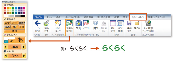 Microsoft® Word 2010の操作をわかりやすくする「かんたん操作」タブで、初めての方でもかんたんに使いこなせます。