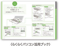 大きな文字で、難しい解説を極力省いた専用マニュアル付き。らくらくパソコンの使い方を楽しく学べます。