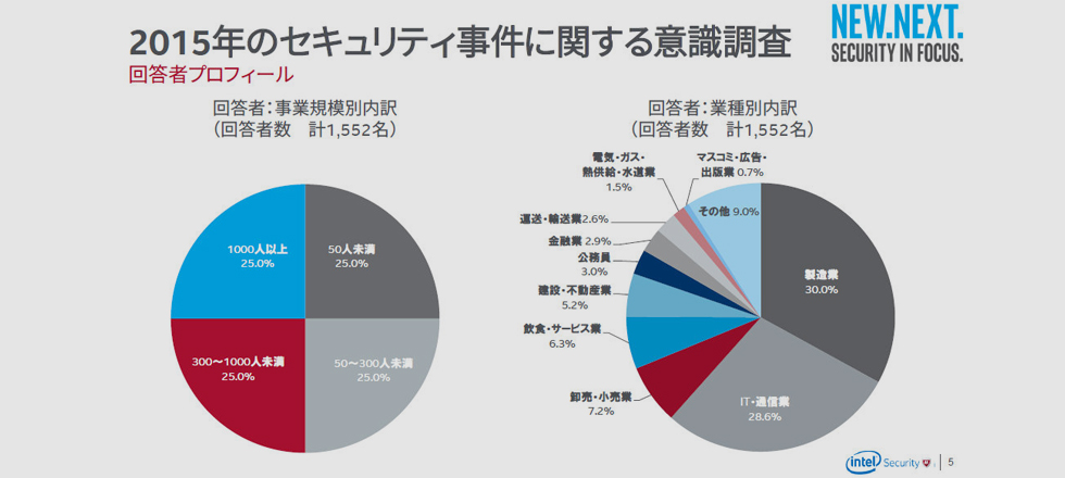 国内の経営層や情報システム部門などのビジネスパーソンを対象に実施した「2015年のセキュリティ事件に関する意識調査」の結果を基に作成したもの。