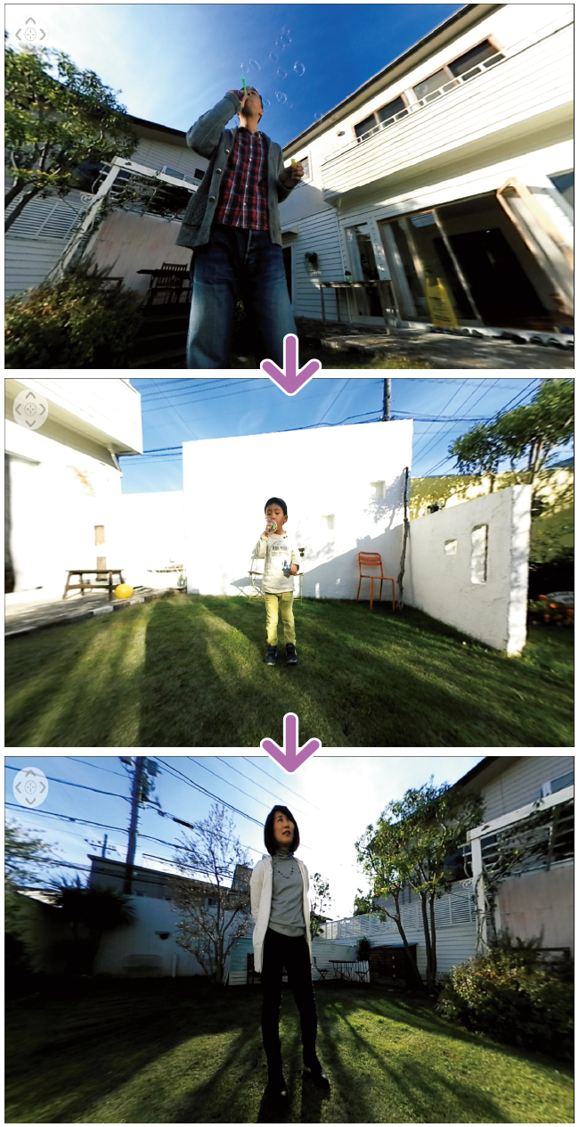 360°動画から好みのアングルを選んで2D動画を作成できます。
