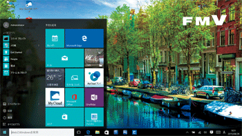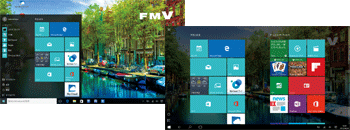 「Windows 7」で人気のあったスタートメニューと「Windows 8」の見やすいスタート画面を融合した「Windows 10」。その進化した使いやすさは、デスクトップ画面上に配置されたスタートボタンをワンクリックした瞬間に即実感していただけることでしょう。デスクトップから「アプリ」画面にいちいち切替える必要がなく、スタートメニューから素早く起動、素早く目的のアプリへアクセスできます。