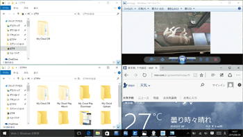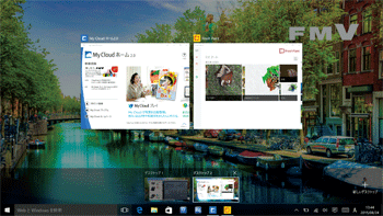 様々な作業が同時に進行している時など、ウィンドウを閉じたり開いたりしていると時間的なロスが生じてしまいます。「Windows 10」ではひとつの画面を2分割、4分割で使うことが可能に。さらにFMVの「ウィンドウ整列ユーティリティ」なら、アプリやフォルダを9つまで同時にスナップ表示したり、一度配置した状態を保存して、必要な時にすぐに呼び出したりすることができます。