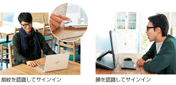 パスワードは入力が面倒なうえに、忘れたり、盗まれたりする危険性もあります。銀行のATM等でもそうですが、これからは「生体情報に基づいた認証」が安心・安全の基準になりつつあります。SH90/W、WS1/W、WU1/Xではあなたの「指紋」が、WH77/W、WW1/W(注1)ではあなたの「顔」がパスワードの代わりになります。指紋認証なら指1本で、顔認証なら顔パスで、かんたんお手軽にサインインできます。