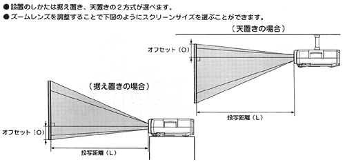 ※オフセットとは、投写レンズの中心からスクリーン下端までの間隔のことです。