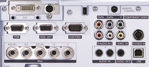 使う人にやさしい操作性を追求しました。本体の操作には入力信号選択用にジョグダイヤル、画面や歪みの自動設定用にワンタッチボタンを採用。また排気は前面からなので迷惑をかけません。多機能のワイヤレスリモコンも標準装備。画質調整や入力信号の切換はもちろん、画面指示に使えるレーザポインタ機能、画面拡大表示の指示も可能です。またズーム、フォーカスの設定も電動なのでリモコンからの操作もできます。さらに添付のマウスケーブル※でパソコンとプロジェクタを接続すれば、リモコンをマウス代わりにでき、プレゼンテーターが離れたパソコンに対してプレゼンの頁めくりの指示などを行うことができます。 ※本体添付のマウスケーブルは、マウスインタフェース(USB)接続です。 |