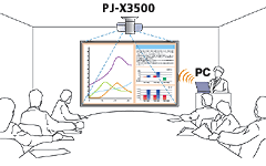 ワイヤレスLAN/LANユニット(PJ-X3500専用) PJX35-WL1(別売オプション) 希望小売価格 130,000円(税別) |