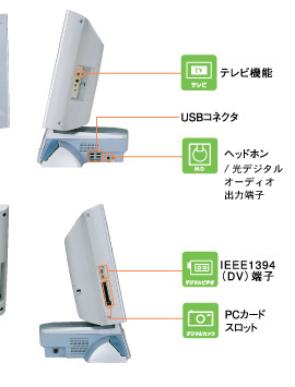 | *写真のパソコンはC8/150WLTです。 *1 C8/150L、C8/150WLは3ポートです。 *2 C8/150WLTのみ。 | |||||||||||||||||||