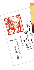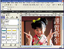 「筆ぐるめVer.9.0」を使えば、デジタルカメラで撮った写真を取り込み、収録されているイラストや挨拶文を選んでいくだけで、初めての方でもすぐにオリジナル年賀状をつくることができます。宛名面も、お好きな書体とレイアウトを選ぶだけの簡単操作です。 |