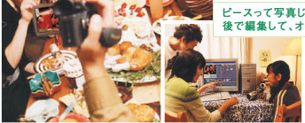 | 気分はもう名ディレクター。「@映像館」を使えば、デジタルビデオカメラで撮った映像にオープニングやエンディングを挿入したり、タイトルやフレームなどの効果を加えて自分らしく演出することができます。簡単操作でオリジナルムービーの完成です。 |