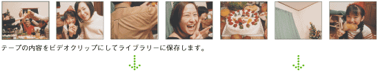 完成したオリジナルムービーはデジタルビデオテープに出力して大切に保存できます。映像のワンカット