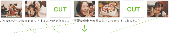 | 「Panasonic MotionDV STUDIOTM3.1」なら、取り込んだ映像を自由に編集して、オリジナルムービーをつくることができます。余分なシーンをカットしたり、映像を並び替えたり、まるでプロのような仕上がりです。 |