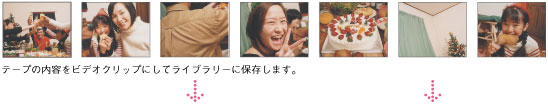 完成したオリジナルムービーはデジタルビデオテープに出力して大切に保存できます。映像のワンカットを印刷したテープラベルやタイムシートをつくることもできます。