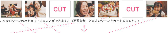 3.1」なら、取り込んだ映像を自由に編集して、オリジナルムービーをつくることができます。余分なシーンをカットしたり、映像を並び替えたり、まるでプロのような仕上がりです。