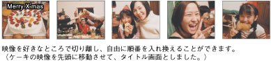気分はもう名ディレクター。「@映像館」を使えば、デジタルビデオカメラで撮った映像にオープニングやエンディングを挿入したり、タイトルやフレームなどの効果を加えて自分らしく演出することができます。簡単操作でオリジナルムービーの完成です。