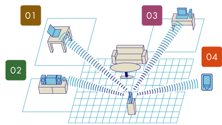 | ワイヤレス対応だから、家中好きな場所でホームネットワークにアクセスできます。配線が不要なため、利用環境もすっきり。 | ||