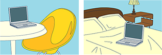 ケーブルのわずらわしさを解消することにより、パソコンの利用シーンをさらにひろげる無線LAN。外出先で情報を検索したり、好きな部屋でインターネットをしたり、場所を気にすることなく思いどおりにパソコンを楽しめます。