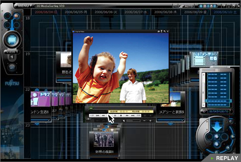録画したテレビ番組などの映像コンテンツを3Dビューで表示する「3D MediaSurfing」。気になる番組をどんどん録画しても、曜日やジャンルをもとにお目当ての番組を簡単に検索&再生することができます。 また、「SD-VideoWriter」*と連携しているので、アナログテレビ番組をSDメモリーカードに保存し、携帯電話で再生することもできます。注8 注8 動画の変換条件によっては映像がスムーズに再生できない場合があります。 *NX95X/Dのみ |