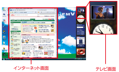 「ウィンドウ表示」に対応し、マウス操作でウィンドウの大きさや配置を自由に変更可能。また、マウス操作でコントロールパネルの操作ができます。インターネットやメールをしながら、テレビを楽しむことができます。注5