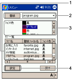 LXメニューは、事前に登録しておいたアプリケーションを簡単に起動するためのアプリケーションです。よく使うアプリケーションを、自分の使いやすい分類に登録できます。また、画面の背景に、好きな画像を壁紙として表示することもできます。