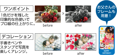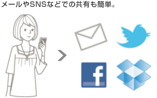 撮った写真の加工や補正がひとつのアプリケーションでカンタンに。メールでの共有やいろいろな形で印刷もでき、みんなで写真を楽しめます。