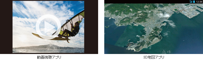 動画視聴アプリはもちろん、3D地図アプリなどの3次元描画や高画質動画までもストレスなく視聴することができます。