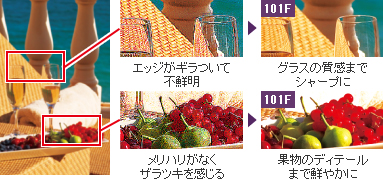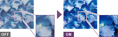 映像に含まれる輪郭や質感を判定し、領域ごとに最適に補正をするので、画像ボケやギラつき感を低減します。