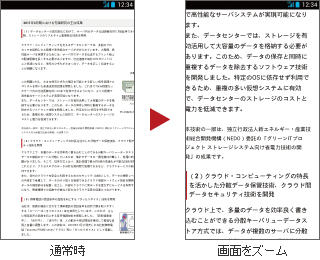 ARROWS Aの揺れを自動で検知。文字の大きさを、動いている時などでも読みやすいサイズに自動で変換します。