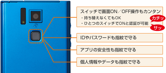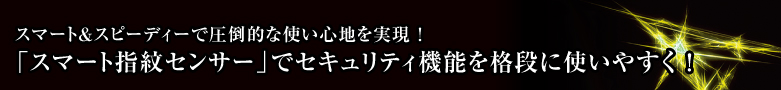 指でセンサーをなぞると、ロックをすぐに解除できるスマート指紋センサーを搭載。パターン入力やパスワード入力をする必要がなく指一本でサッと認証できるので、スマートな操作でセキュリティ機能が使いこなせます。