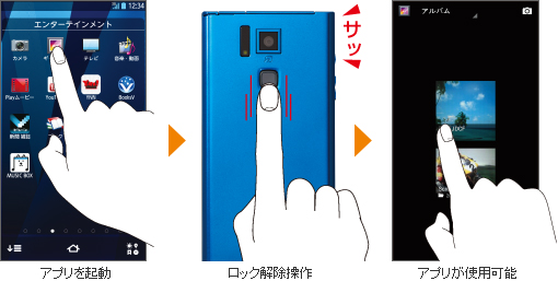 アプリごとにロック設定ができます。アプリ起動時に認証操作が必要になるため、高いセキュリティを保ちます。