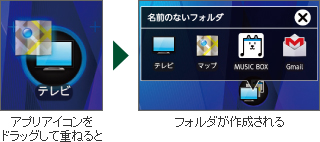 ホーム画面上で2つのアプリアイコンを重ねるだけでフォルダを作成できます。フォルダをタップすると吹き出し形式でアプリを表示するので、どのアプリが入っているのかひと目でわかります。