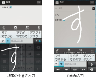 全画面手書きアイコンの選択またはキーボードの引き下ろしで、ディスプレイ全面を手書き範囲として利用可能。複雑な文字でも快適に入力できます。さらに、手書き入力はテンキーやキーボードの上からも行えます。