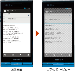 画面のコントラストを下げて表示内容を見えにくくして、第三者の視線を気にせずにメールチェックなどを行えます。