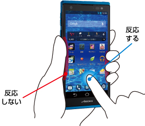 スマートフォンを握る手や指が画面の端にかかっていても誤作動しないので、しっかり握っていても安心してタッチ操作ができます。