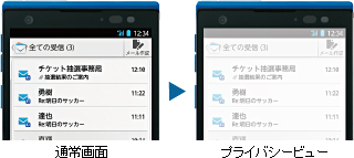 画面に模様を重ね表示内容を見えにくくして、他人の視線を気にせずメールやWebサイトなどをチェックできます。