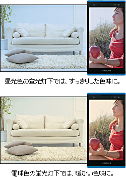 蛍光灯、電球、太陽光など、環境により異なる光の状態を検知。画面の色味を自動的にベストな状態に調整します。
