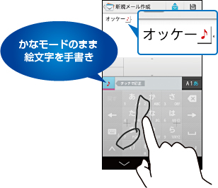 キーボードの上から手書き入力が可能。記号や絵文字(注12)などの切替が不要なので、直感的にすばやく文章が作成できます。韓国語や中国語(簡体字)にも対応。