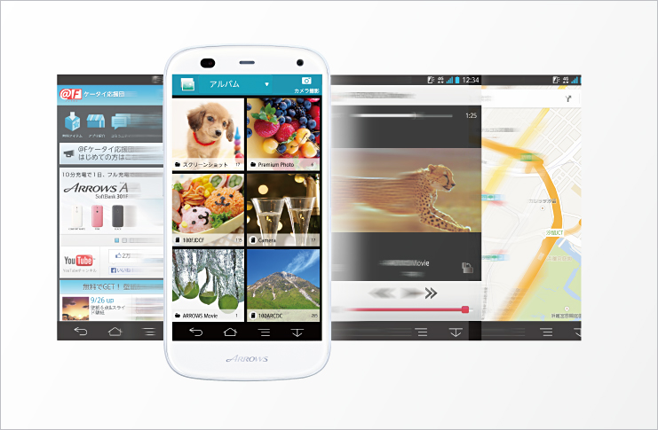 【10分充電で1日、フル充電で3日使える(注1) ストレスフリーな使い心地、ARROWS A】 ARROWS A(エース) SoftBank 301F/安心!ストレスフリーな電池持ち。 忙しい朝に10分の超急速充電で1日使える。フル充電では3日使えて旅行も身軽&安心。(注1)/キレイ!誰でもカンタンに最高の一枚が撮れるカメラ。 富士通オリジナル画像処理エンジン“GRANVU”搭載。カメラまかせでどんなシーンも色鮮やかにクリアに撮影可能。/満足!人に寄り添う使いやすさ。 富士通独自の指紋センサーや、進化したヒューマンセントリックエンジン(R)による究極の使いやすさ。/(注1:1日とは、総務省統計局「平成23年社会生活基本調査」の行動の種類の中から睡眠時間を除いた活動時間(16.3時間)を想定しています。平成23年社会生活基本調査(総務省統計局)http://www.stat.go.jp/data/shakai/2011/index.htm 10分充電とは、充電を促すメッセージが出始めて(電池残量15%)から同梱の卓上ホルダで充電した場合を想定しています。お客様の使用状況を想定し、実際に測定したものです(富士通調べ)。またアプリの動作状況やネットワーク環境により大きく変動する場合があります。)