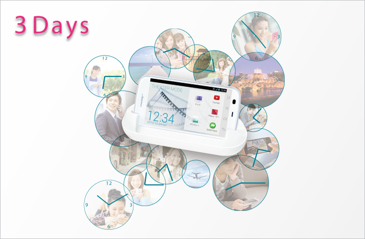 • 10分で1日充電とは、充電を促すメッセージ表示後に同梱の卓上ホルダーで充電した場合(富士通調べ)。