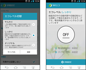 Wi-FiやGPSなど各機能のON/OFFをはじめ、CPUの最大処理能力や画面のなめらかさを制限するなど、細かな省電力設定でバッテリーを長持ちさせることができます。設定は、やんわり・しっかり・オリジナルの3つのモードから選べます。