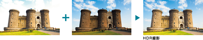 露光時間の違う2枚の写真を同時に撮影・合成し、目で見るままの鮮明な美しさを残せます。