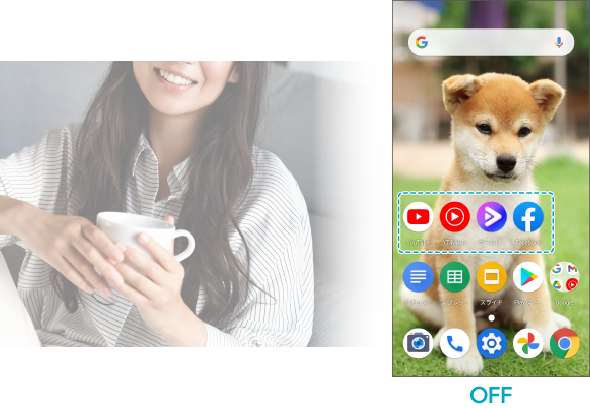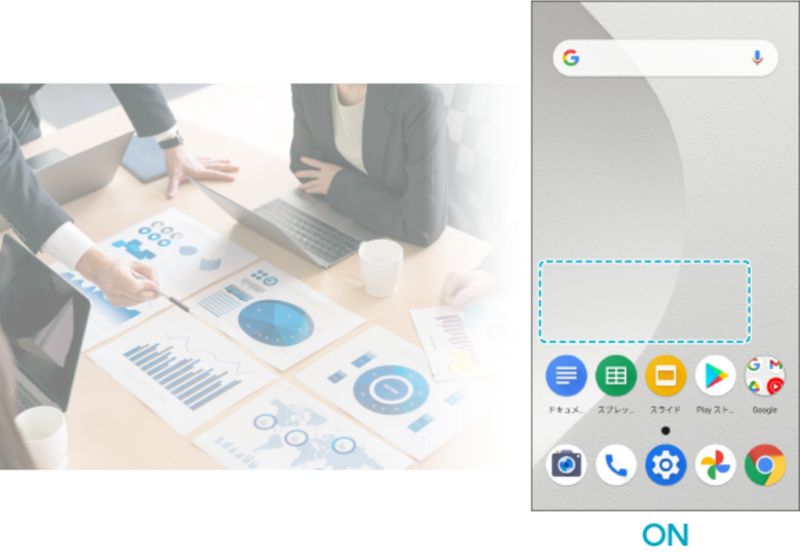 ビジネスとプライベートを一台で使い分けることが可能に。着信通知オフや特定アプリの非表示設定など、利用シーンに応じた使い方でプライバシーをしっかりと守ります。