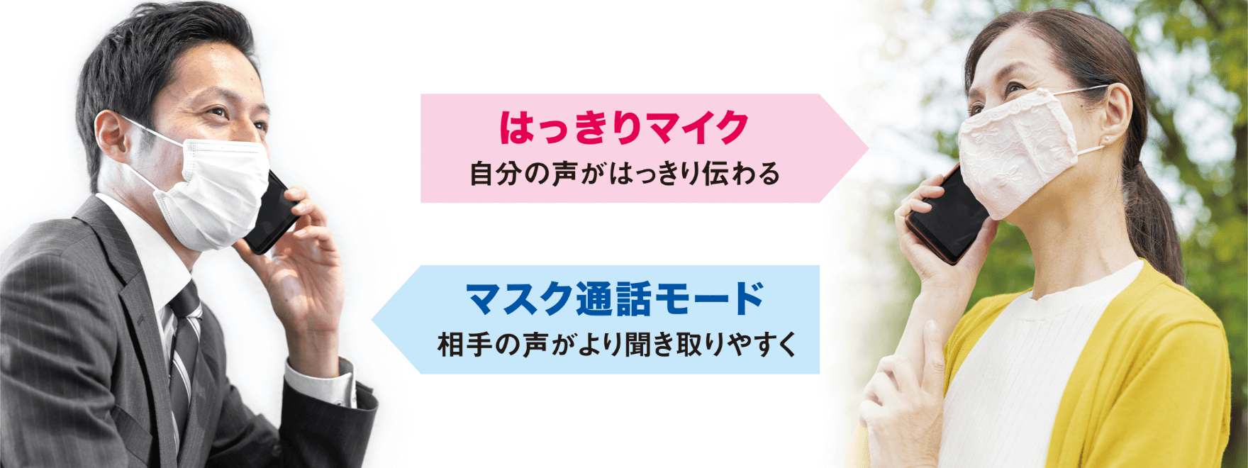 マスクでこもった相手の声を聞き取りやすく補正する「マスク通話モード」と、自分の声が小さい時には自動的に送話音量をアップする「はっきりマイク」でお互いの声がより聞き取りやすくなります。らくらくスマートフォンで長年培った技術が光る、使う人に合わせた親切設計です。