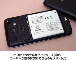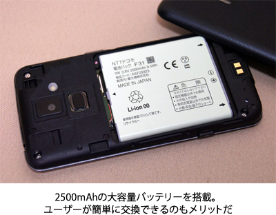 簡単に使えるだけでなく、「長く」使えるのもF-04Fの特長だ。2500mAhと、4.3インチのコンパクトなサイズの端末としては最大級のバッテリーを搭載しているだけでなく、「WhiteMagic™」と呼ばれるディスプレイを採用しており、高い省電力性と、屋外でも見やすい輝度の高さを実現、NTTドコモによる計測では実使用時間97.8時間を達成している。長時間の外出や出張でも、安心して連絡手段として使えるのは大きな魅力だ。