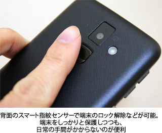 ビジネスシーンでスマートフォンを利用する際は、内部の重要なデータをどのように保護するかが鍵となるが、指紋を利用することで、利用者に負担をかけることなくセキュリティを確保できるというわけだ。