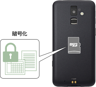 microSD™カードと端末をひも付けて内部データを暗号化できます。万が一、スマートフォンを紛失したり、故意にmicroSD™カードを抜き取られた場合でも、他の端末でドキュメントや画像などのデータを読み取ることができないので、機密情報の漏えいを防止します。