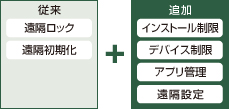 「ビジネスmoperaあんしんマネージャー(注2)」と連携することで、アプリのインストール制限、デバイス制限などの機能を提供します。これらの機能は従来提供が難しい機能でしたが、本機種ではOSをカスタマイズすることで実現します。